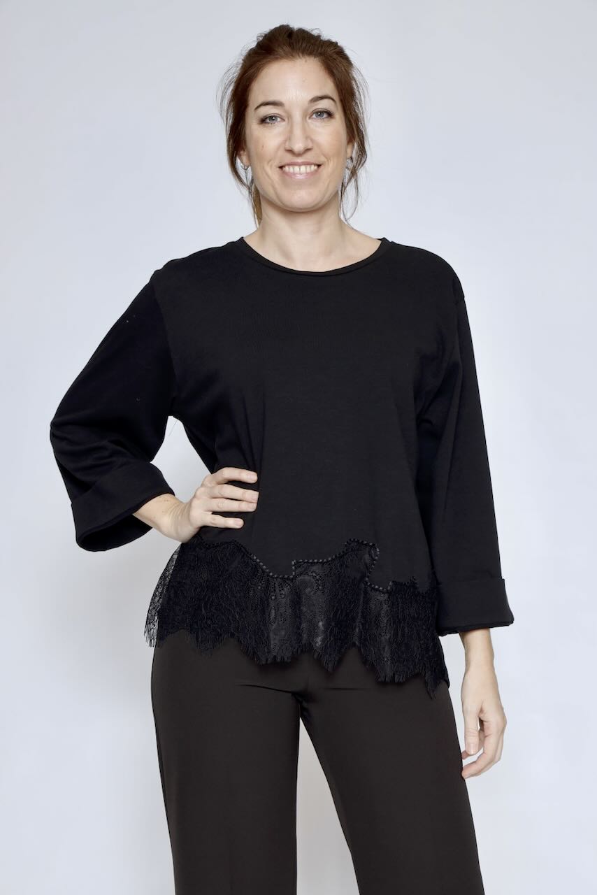 Esta blusa es perfecta para looks elegantes y sin esfuerzo. Con detalles de encaje en el bajo delantero, te hará lucir sofisticada en cualquier ocasión.