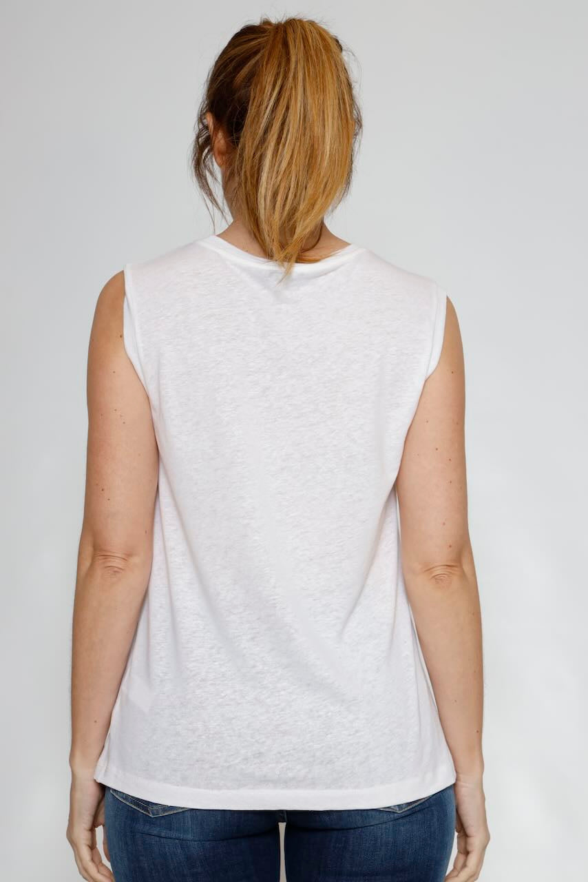 Este top está fabricado con un 50% de bambú y un 50% de lino, lo que lo hace suave al tacto, transpirable y respetuoso con el medio ambiente.