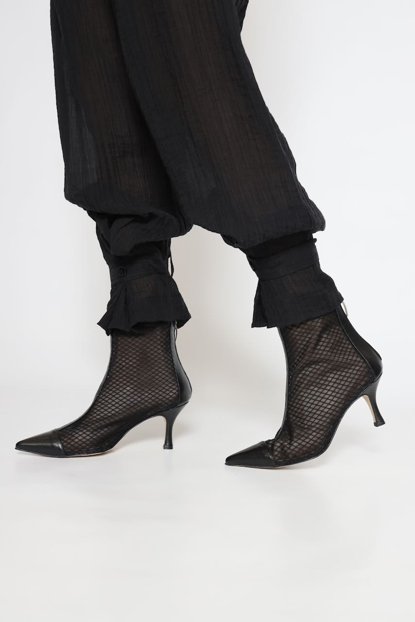 Este botín de diseño femenino en color negro es la combinación perfecta entre elegancia y comodidad. Su tejido de mesh negro combina transparencia y estructura para crear un efecto visual sofisticado y moderno. Con un acabado liso en la puntera y un tacón fino de altura media, este botín ofrece estilo y confort a partes iguales. Además, al ser un diseño atemporal, podrás disfrutar de él temporada tras temporada.