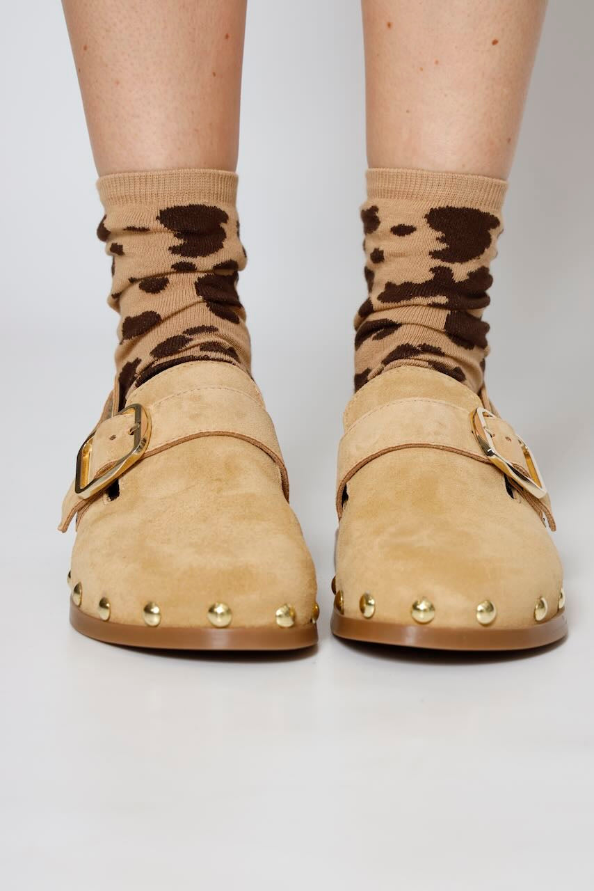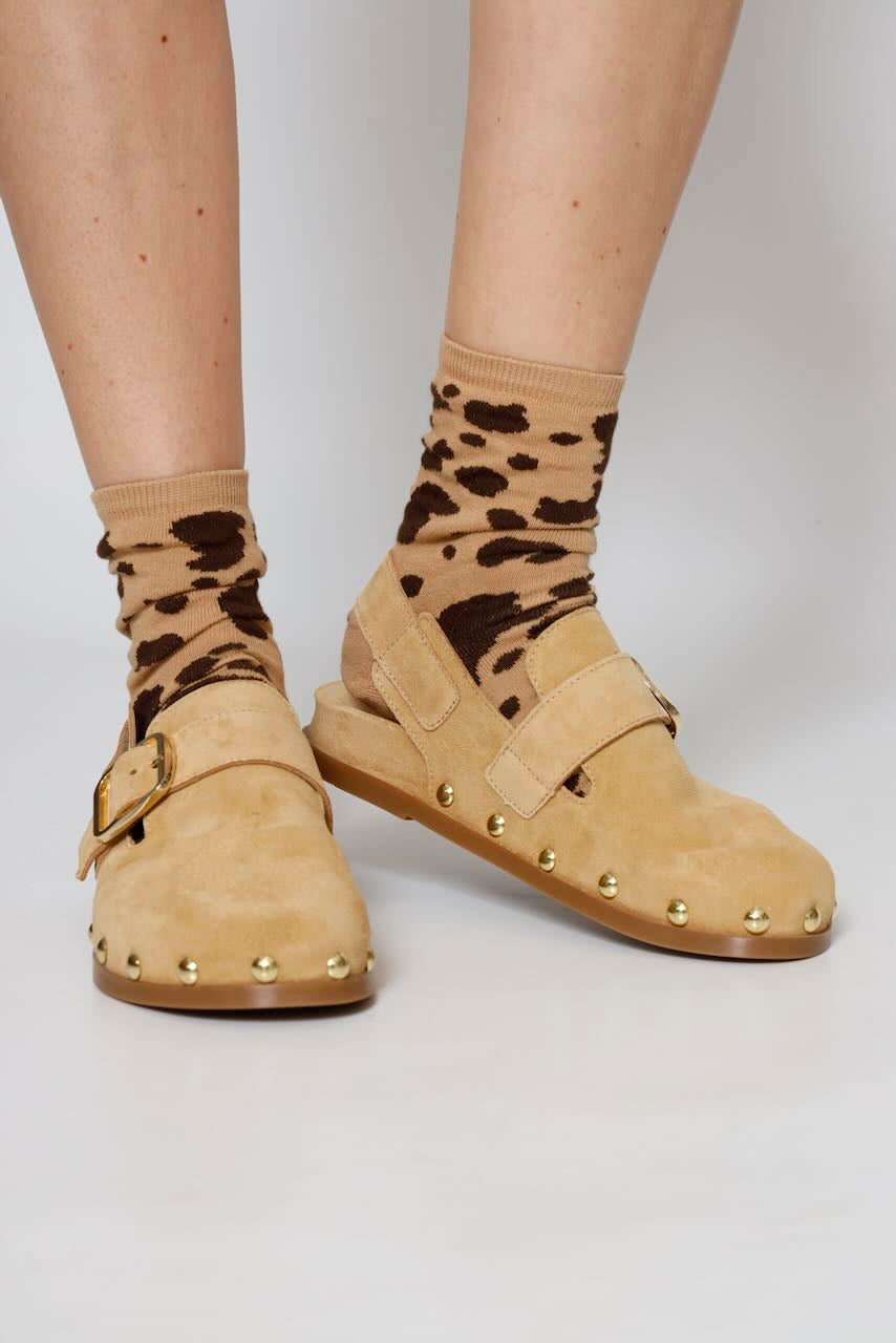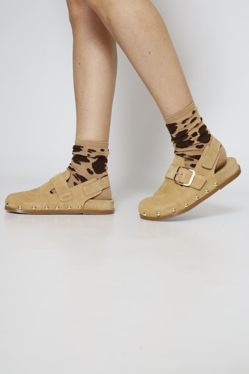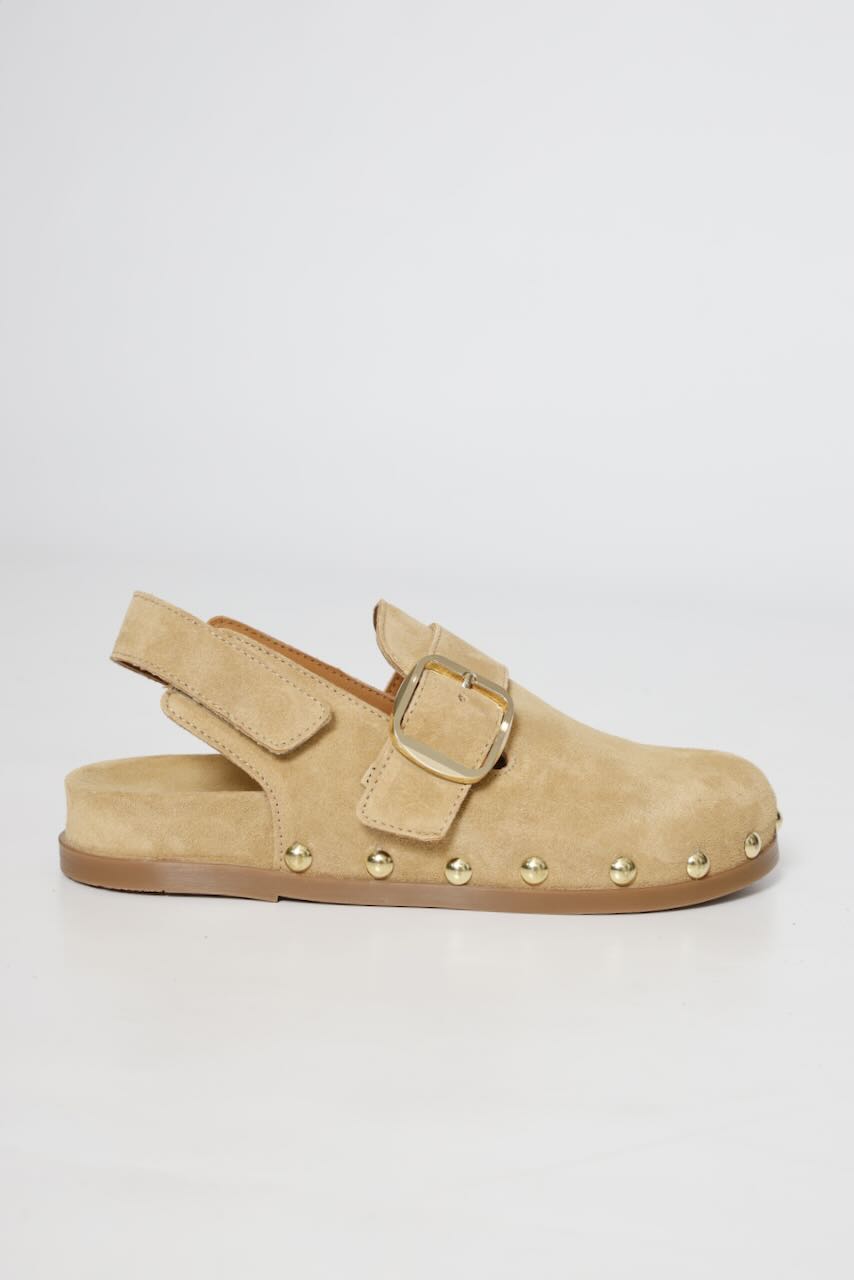 ¡Dale un toque chic a tu outfit con estos zuecos de piel en color arena!