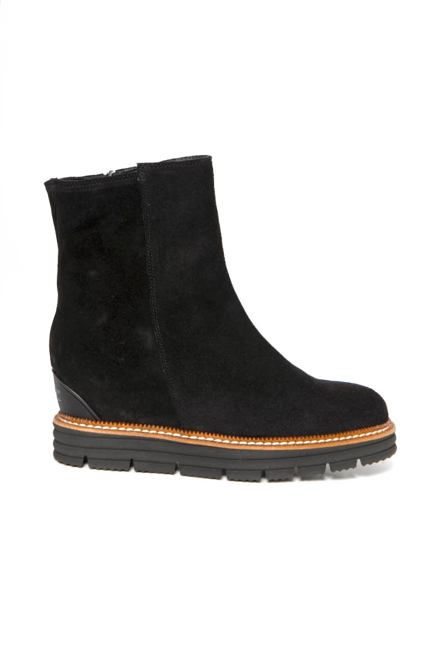 Este elegante botín de cuña 100% piel en color negro es el complemento perfecto para tus looks de temporada.