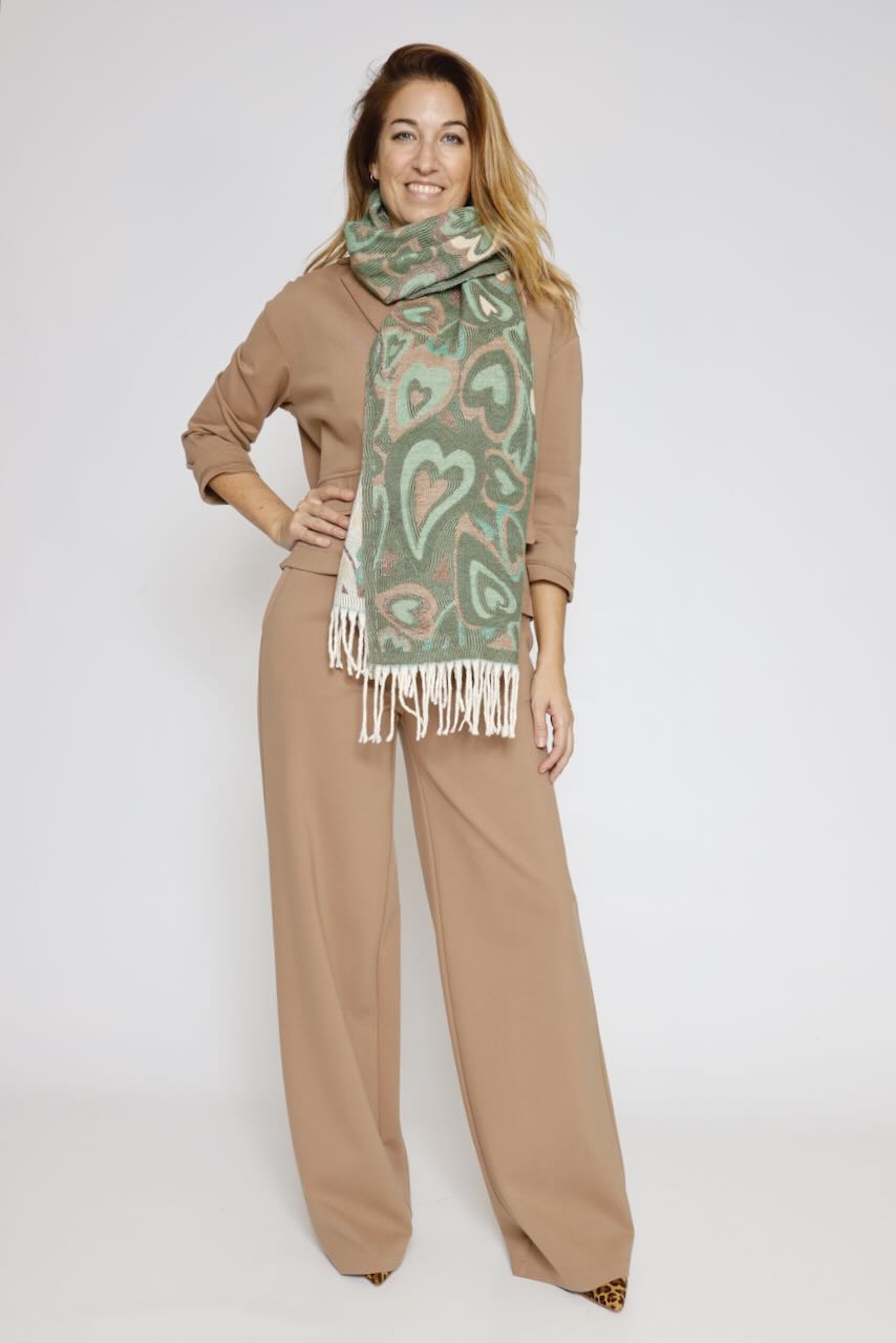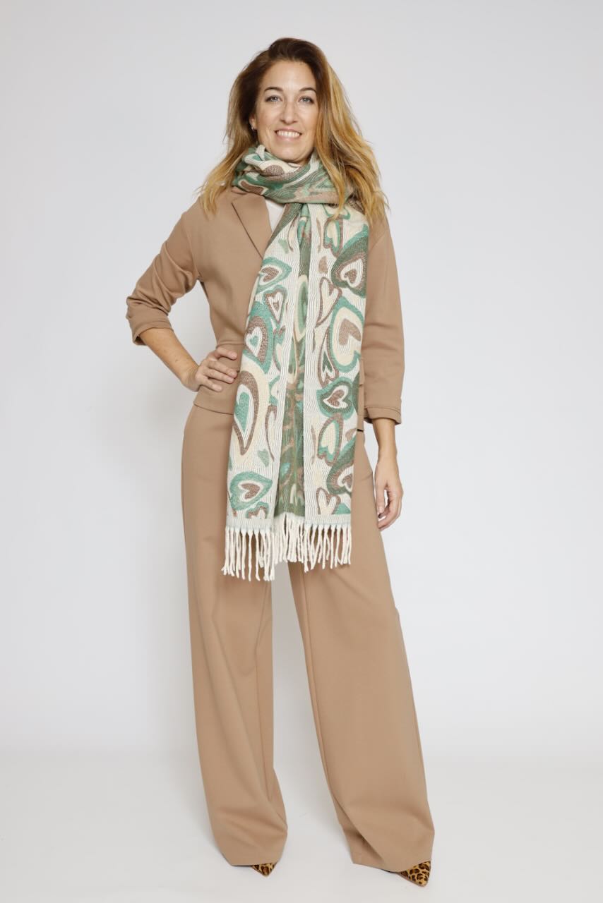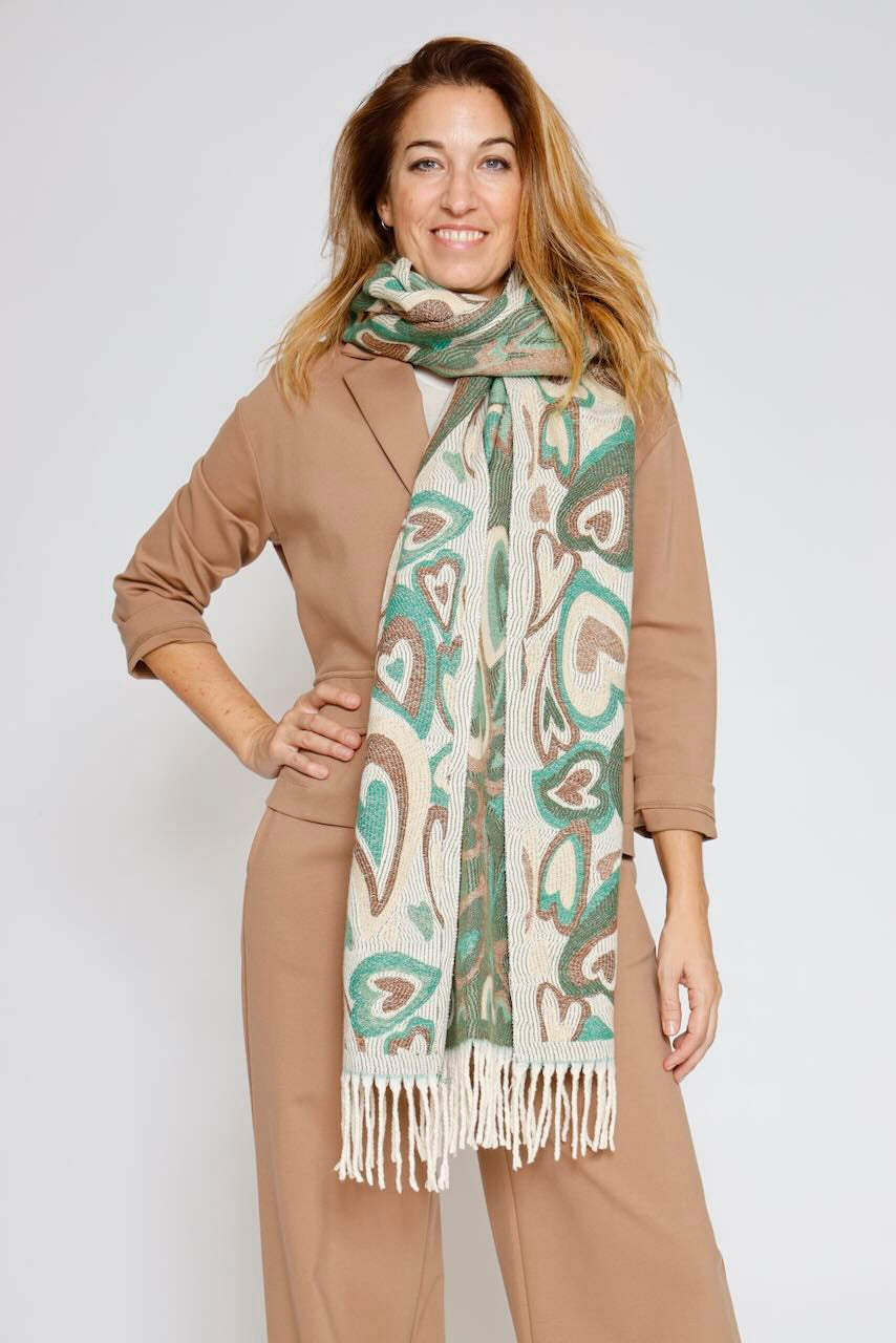 Esta bufanda en tonos verdes es el complemento perfecto para mantenerte abrigado/a con estilo durante los días más fríos.