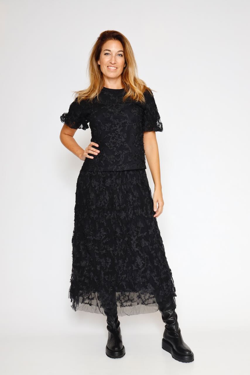 La camiseta con detalles florales es una prenda elegante y moderna que te hará lucir radiante en cualquier ocasión.