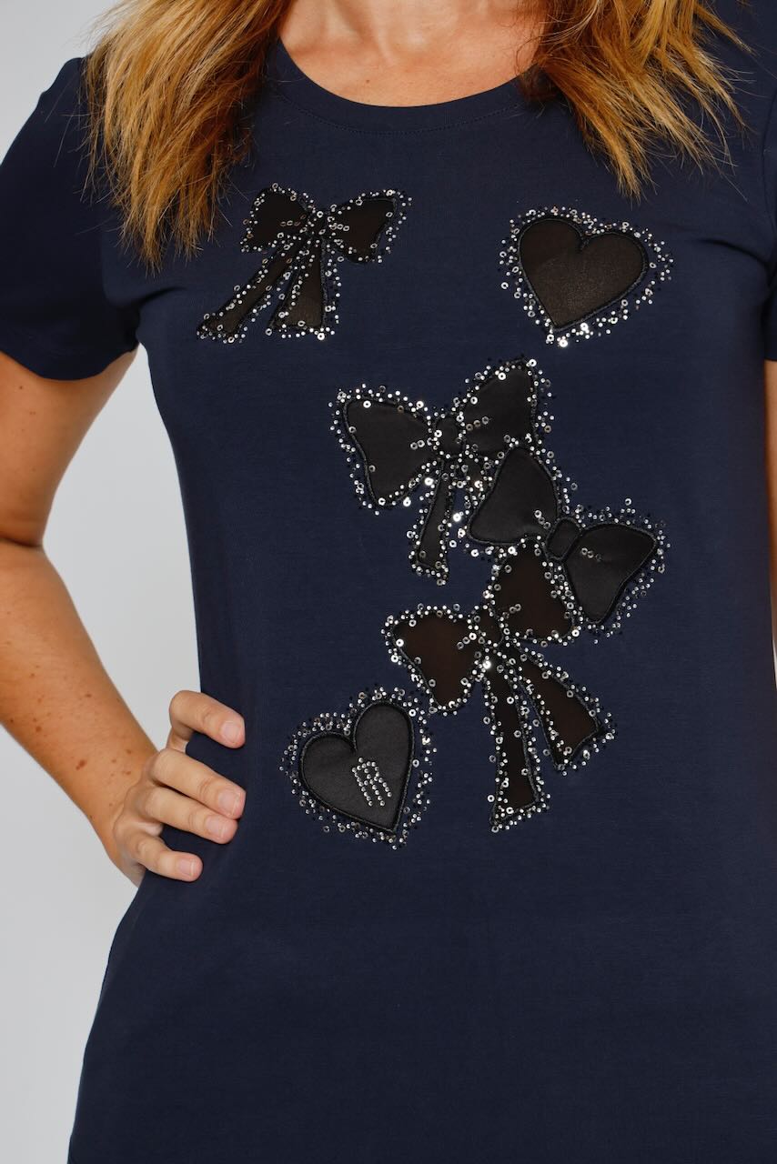 Camiseta de corte regular en jersey de algodón. Cuello redondo, estampado de corazones con pedrería y manga corta.