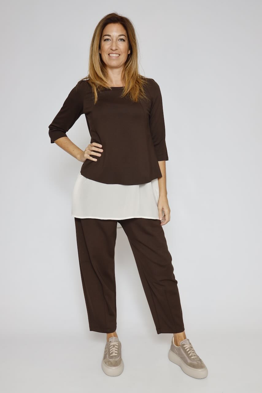 Te presentamos la prenda de ropa T484KHZ en color marrón de la marca CAMPANOLO, con una combinación de materiales que te brindarán comodidad y estilo.