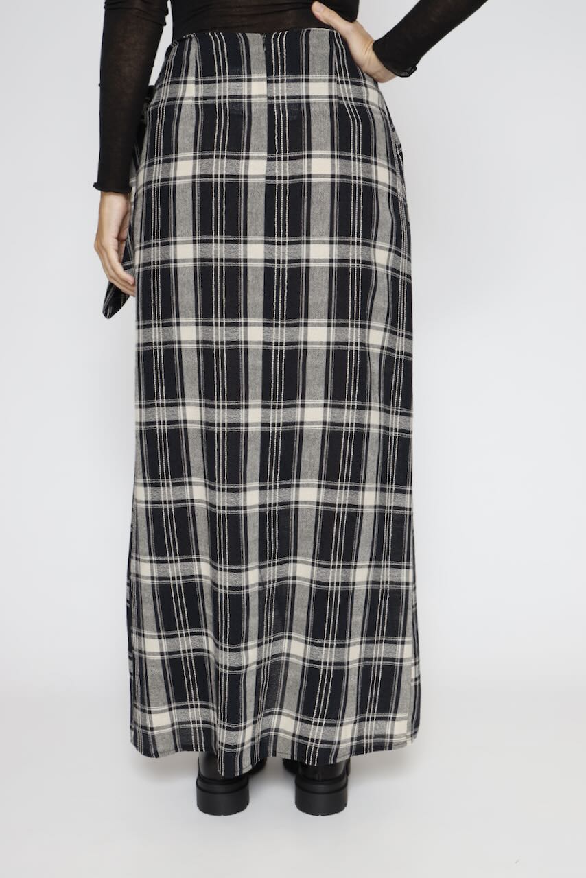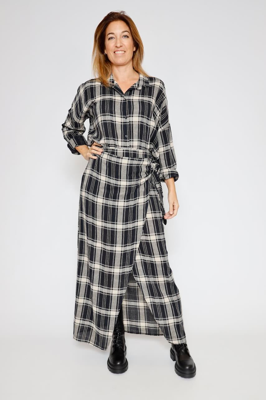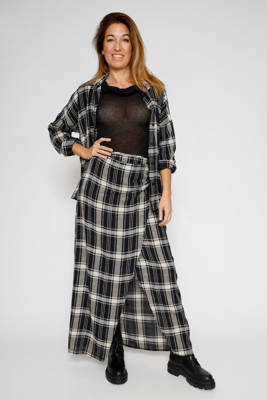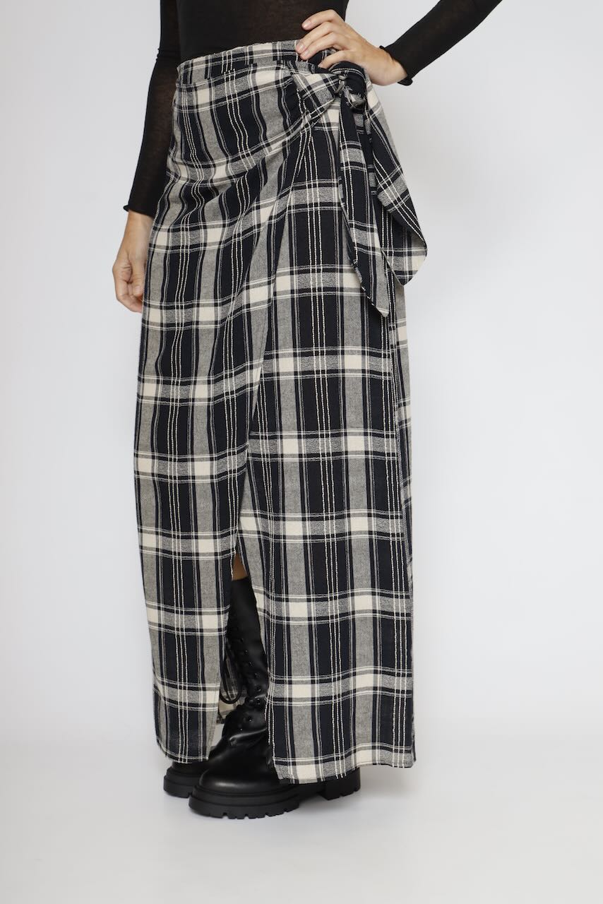 FALDA PAREO EN TONOS BEIGES Y MARINO OSCURO