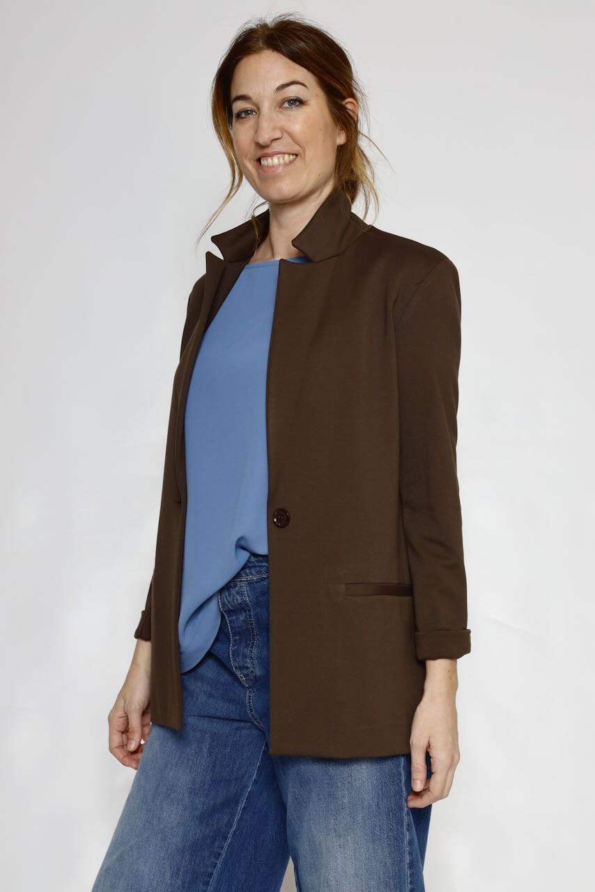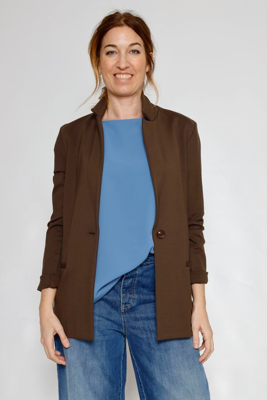 Innovadora americana de gran tamaño en color marrón. Ideal para completar tu look casual o formal con un toque moderno.
