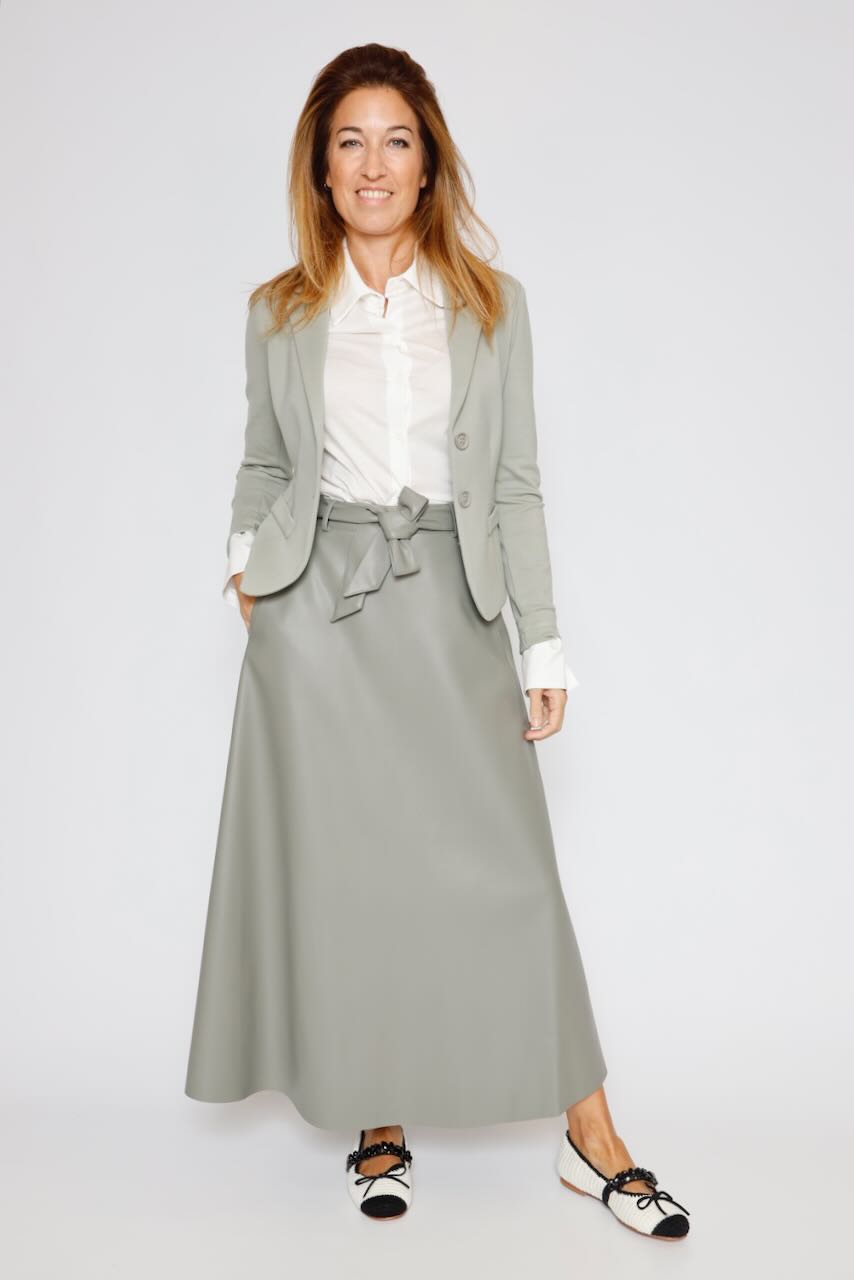 Confeccionada con una mezcla de viscosa, poliamida y elastán, esta americana es ideal para cualquier ocasión. Su color salvia le da un toque único y elegante, mientras que su diseño en punto roma la convierte en una prenda versátil y duradera. ¡No te pierdas la oportunidad de añadir esta Americana Punto Roma a tu armario!