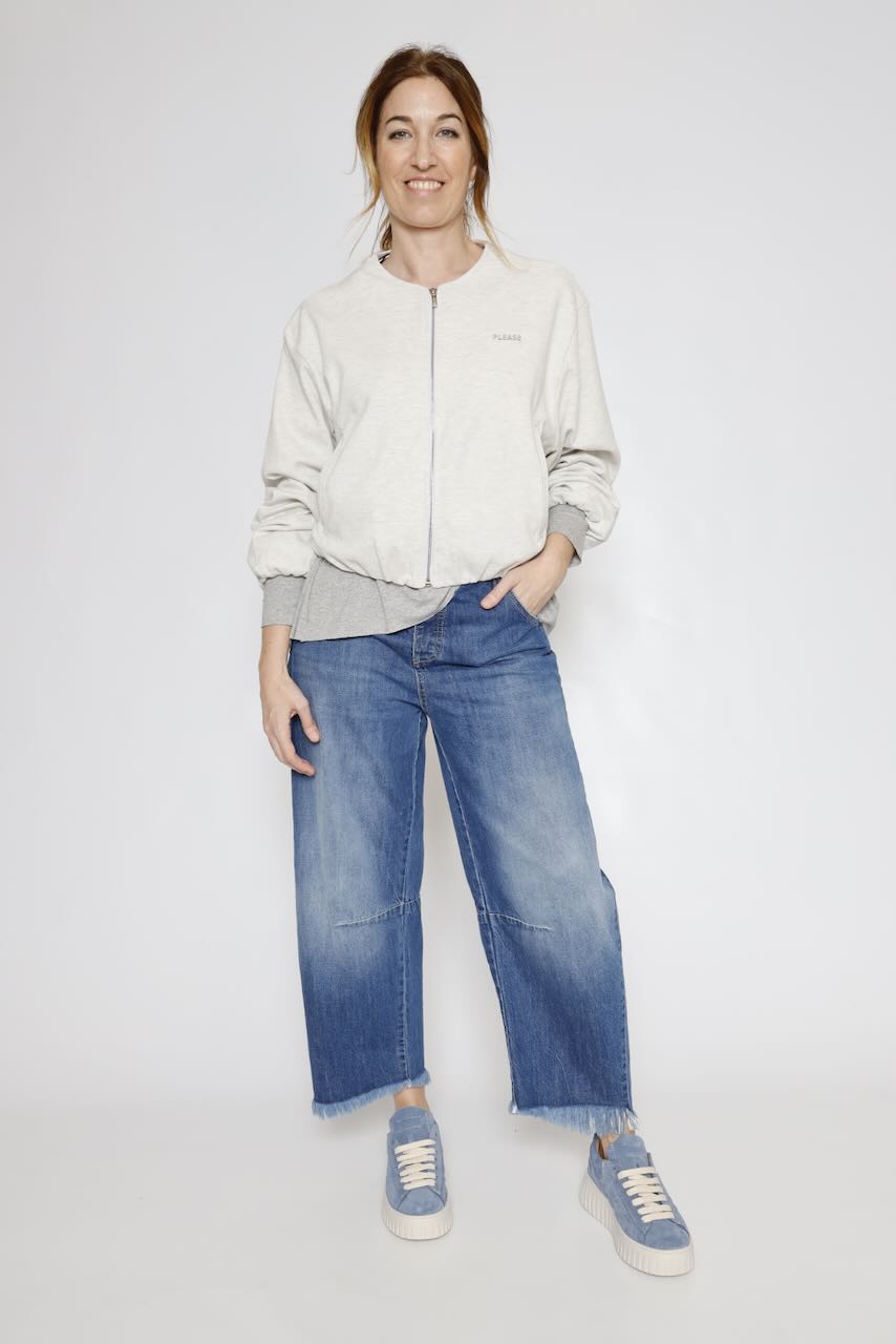 Sudadera corta con cierre de cremallera, bolsillos laterales y puños fruncidos que le dan un aire desenfadado. Ideal para looks urbanos y para combinar sobre tops ajustados o camisetas. Muy práctica para el día a día y perfecta para explorar tu estilo con total libertad.