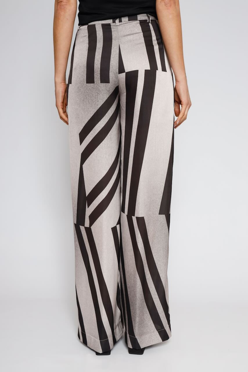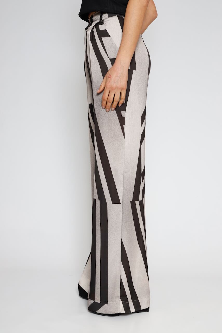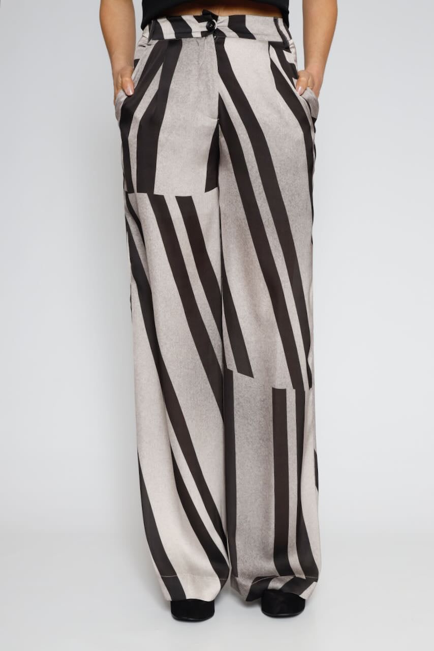 Pantalón de color negro y beige fabricado con un 35% de poliéster reciclado y un 65% de poliéster.