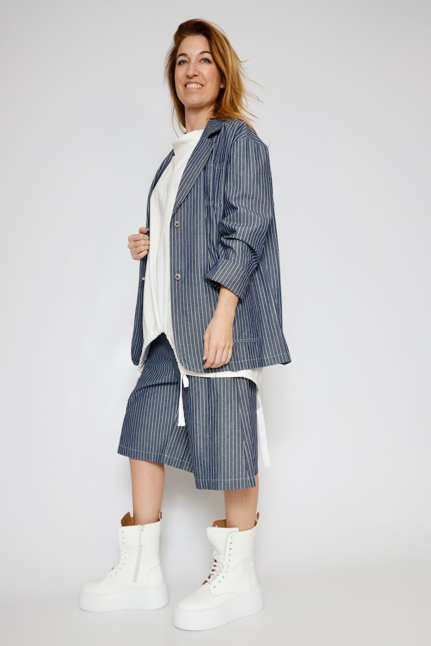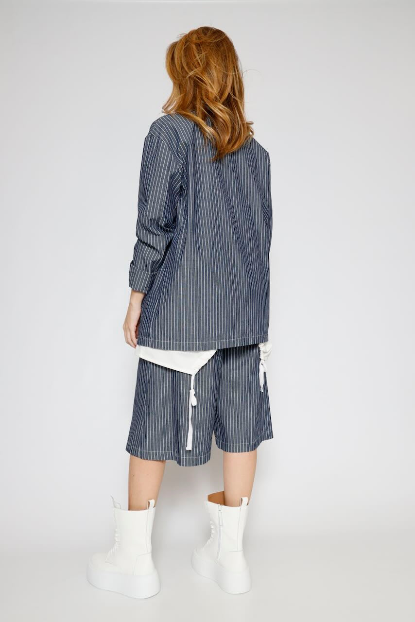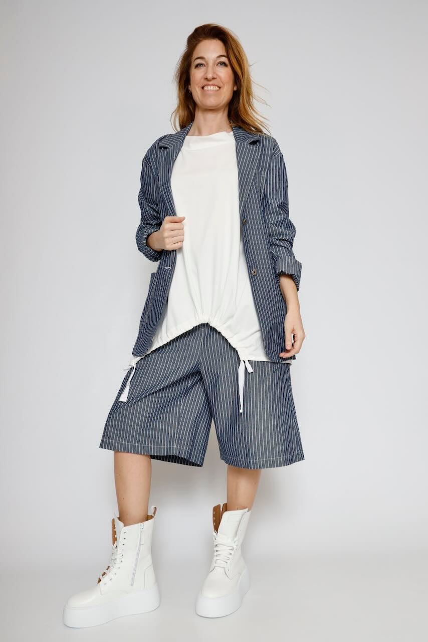 Disfruta de un estilo fresco y veraniego con estas bermudas a rayas, complementadas con un cinturón a juego. Ideales para lucir casual y elegante a la vez.