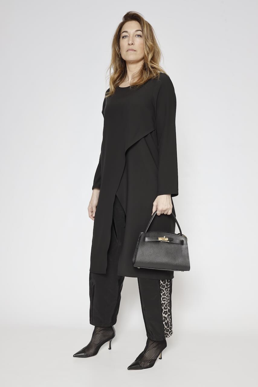 Este elegante bolso de color negro es el complemento perfecto para cualquier outfit. Está fabricado con piel de alta calidad y cuenta con un diseño moderno y funcional.