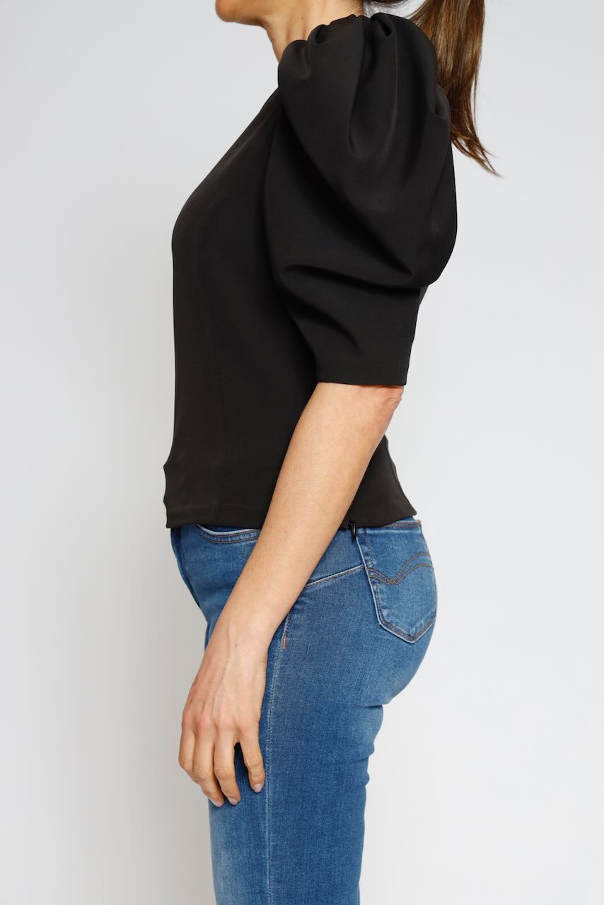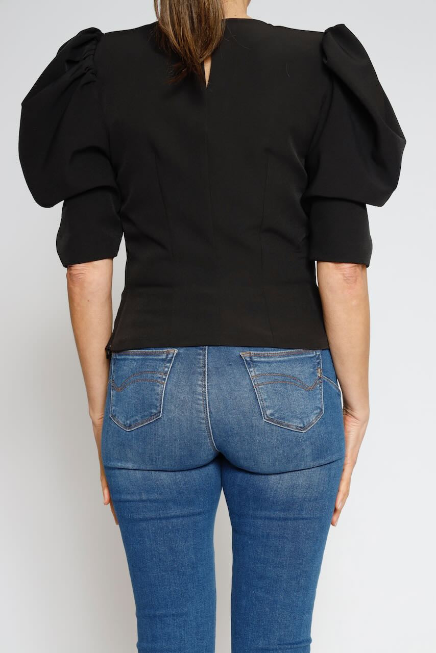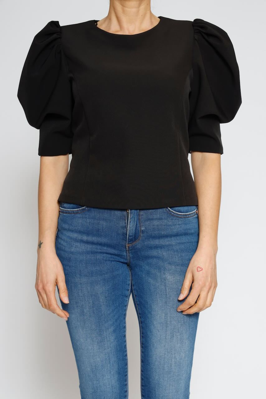 Este top es perfecto para cualquier fiesta o evento casual. Su diseño de manga corta abullonada le da un toque de elegancia y estilo único. Combínalo con unos vaqueros para un look versátil y moderno.